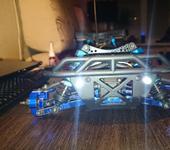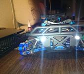 Теперь немного про свет. Так как фары много переворотов не выдержали (планка на которой они крепились постоянно ломалась), пришлось придумать что-нибудь другое. После долгих раздумий нашел единственный вставить два светодиода в бампер, а задние остались на прежднем месте. Все провода были убраны под верхнюю пластину, там оказалось достаточно места. Была сделана еще одна модификация, так как сзади много скапливается летом - песка или земли, а зимой - снега, была необходимость сделать защиту. Вырезана из пластиковой канистры, а прикручена на болт от стабилизатора. Теперь встала задача сделать тоже самое спереди и главное чтобы выглядело эстетично.