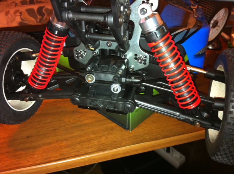 Зависит от того, для чего используете шасси. Если для башинга - то максимально увеличить ход подвески (регулировочными винтами), поджать пружины, поставить колеса от трагги. Если для трассы то зависит от конфигурации. Опишите подробнее.