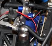 Во первых- регулятор Hobbywing EXRUN WP SC8 120А. Установил его перпендикулярно направлению движения, для того чтобы рядом установить внешний BEC Hobbyking YEP 20A, на фотке виден только его радиатор, справа от регулятора. Залил его компаундом КПТД-1/1Т-8.5, нижнюю часть платы в кирпичик. Питает серву и габаритные огни.