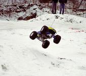 За качество не судите строго - условия съемки были трудные. Освещение слабое, рассеяное (нету ни теней, ни рельефа поверхности). Подложка снежная слабо освещенная, поэтому вся как сплошное полотно, не поймешь, то ли яма, то ли трамплин, то ли джип летит над ней, то ли едет… Нужно солнце! И лето бы поскорее…