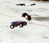 За качество не судите строго - условия съемки были трудные. Освещение слабое, рассеяное (нету ни теней, ни рельефа поверхности). Подложка снежная слабо освещенная, поэтому вся как сплошное полотно, не поймешь, то ли яма, то ли трамплин, то ли джип летит над ней, то ли едет… Нужно солнце! И лето бы поскорее…
