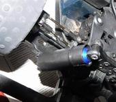 Это конструкция прослужила ровно два заезда. В первом - пластинка сложилась вверх и при повороте колес стала мешать, после была отгнута. Повторные удары вызывали ее обратное сминание в результате чего от этой идеи пришлось отказаться.
