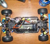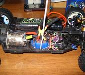 Есть ещё порох у Забуноводов)) Наконец-то поставил бк. Чтобы конструкция жила долго и машинку не скручивало была усилена ванна алюминиевой пластиной 3мм и сделана алюминиевая верхняя дека 2мм. Багги стала вести себя гораздо предсказуемее, т.к. сильно повысилась жёсткость конструкции. Конструкция центрального вала была переделана под тамиевский алюминиевый кардан (описано в посте выше). Так же были поставлены стальные дифференциалы с алюминиевыми корпусами (FZW18 + FZW25). Силиконовое масло сзади 5000, спереди 3000. Летает превосходно. Собираюсь попробовать 11.1 V. Правда сначала на очереди универсальные карданы и алюминиевые амортизаторы))
