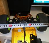Добрый день, а не подскажите сколько получилась база и ширина от хекса до хекса? тоже думал над тем что бы на кошку DRX поставить корку и колеса от слеша. но не знаю, хватит ли вылета…😃
