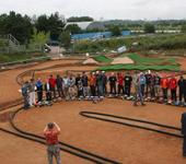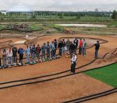 Препятствия – сложные по нашим обычным меркам. Первый большой трамплин уже требует определённого умения и достаточно сложен особенно для стандартных монстров. Его можно и переезжать, но тогда теряется очень много времени, опять же - для стандартных монстров с их высоким центром тяжести простой переезд тоже может составить некоторую проблему… Следующий и говорить нечего – мало того, что профиль сумасшедший, так ещё и «слепой». Остальные трамплины на мой взгляд попроще, хотя требуют умения для быстрого прохождения. Заезд на «стол» вообще не предполагает прыжка – профиль такой получился, а потом через 2-й маленький трамплин прыгается элементарно. Вот следующий длинный трамплин гораздо интереснее – эту связку 4-х трамплинов можно проходить разными способами, самые простые – 2-2, 1-2-1, быстрее – 3-1, причём первый «длинный» прыжок реально требует умения рулить и выравнивать модель в воздухе. Финишная прямая – длинная, но увы – узкая, к тому же с уступом на месте окончания пит-стопов. Поэтому «раскочегаривать» на полную, так как в Раменках удаётся не всегда, а обгоны здесь – вообще противопоказаны. Так уж получается, что для обгонов остаются многочисленные повороты (классика!) и особенно – трамплины! «Обгон сверху» - здорово, не правда ли? Наконец, в «урезанном» варианте для 10-го масштаба трасса тоже очень неплоха – электрические «десятки» были как никогда зрелищны – те же эффектные прыжки полноприводных XXX-4 и «Лазера». Можно ещё много чего добавить, но итог – трасса интереснейшая и на ней реально тренироваться перед поездками за границу.