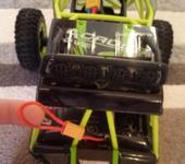 Далее по включению самого авто. Сначала я вынес кнопку регуля вперед машины, немного увеличив отверстие. И спаяв переходничек на XT30 для подсоединения этой кнопки под коркой. Но такое решение оказалось неудобным, поскольку при установке корки приходилось долго и геморно укладывать внутренний кабель чтобы он не попал в аморты, кулер, под качалку сервы и т.д, а места внутри уже не осталось. Можно было использовать родную кнопку в штатное место. Но кнопка на днище меня не устраивала. Зимой там налипает снег, а летом будет песок и грязь. Надо чтобы машина подьехала и сверху ее можно было выключить. Поэтому я отпаял кнопку, а вместу нее на базе того ж XT30 сделал тупо перемычку, и если мы соединяем разьем то замыкаем цепь Внутренний кабель укоротил, теперь когда мы соединям корку разьем вытаскиваем наружу, внутрь он не упадет, поскольку некуда ему падать. Разьединять тоже удобно просто дергаем за петлю. Саму петельку подцепил на лупучку к корке чтобы не потерять. Во первых такое решение будет работать даж в ведре с водой, во вторых удобно разьединять и соединять даже в перчатках. МОжно было и просто спаять провод перемычкой и машина бы включалась при подсоединении аккума, но лучше перестраховаться, потому что можно забыть вытащить аккум и включить аппу, и машина в какой то неудобный момент улетит с багажника.