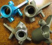 Нашлось времечко забрать новые поворотные кулаки. На фотке два сереньких - сделаны на заказ, а синенький и серебристый - магазинные.