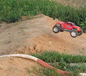 Дважды, сначала левое потом правое ломались от прыжков и кувырков передние, пластиковые, боковые пластины крепления передка к раме, в месте крепления болтами, один нижний и один верхний рычаги передней подвески. Колесные диски сделаны из дерьмовой пластмассы, разбил два, ни куда не врезаясь, просто от прыжков и кувырканий. HPI – ные рулят))