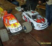 В финале мотор у Димы догорел, хотя ещё до этого Денис успел его объехать. Вообще на соревнованиях весьма неплохо и адекватно смотрелся заднеприводный трак Ассо, Андрей вполне неплохо ехал. В квалификации так вообще - только немного уступил Денису, что совсем неплохо для первого раза, а ведь по трассе хватало и кочек, и разных неровностей, что делает езду на заднеприводной технике довольно-таки сложной.