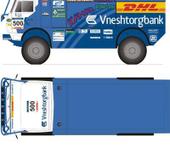 Для начала - попробуй сделать простую имитацию и посмотри как оно будет, потом сделаешь больше и лучше, опираясь на опыт. Сделай для начала маленькую, на шасси мини-зетки - оверленда - там колёса тоже похоже выглядят! У тебя на фотках есть бумажная модель-склейка - нарой её развёртки, отмасштабируй в нужном масштабе, распечатай на цветном принтере и склей. Этот кузов прицепи на шасси оверленда - вот простейший вариант. Посмотришь как вышло и потом сделаешь большую. Также можно и для большой. Вместо бумаги только лучше взять белый вспененный ПВХ (толщину прикинешь - для маленькой 1мм, большой - 3-4), который используют макетчики и рекламшики - прекрасно режется и клеится циакрином. Заодно можно края скруглить и зашлифовать более копийно. Для 10-го масштаба можно взять и шасси Туарега (лучше всего конечно - дорогого форда-350), и слегка поумерив амбиции - хоть шасси тамиевского Хаммера (ТА-02) - колёса там такие, может даже - ТЛ-01 с этими колёсами или любую другую шоссейку. Ну независимая будет - ну и что? Для начала - сойдёт, потом мосты можно достать и переделать. (Как вариант - французкий грузовик дакаровский с независимой подвеской делать вместо КАМАЗа). А можно ТЛТ-1 прикинуть или пилотажевский УАЗик (с удлиннением и модификацией рамы) - будут мосты. Модели поискать в барахолке задёшево, чтобы потом запчасти купить, а не делать заново. Если всё вручную делать - жизни не хватит, проект скорее всего заглохнет. Если пластик тебе покажется мягким (неужели гонять соберёшься на копии?) - обклеешь его сверху стеклотканью.