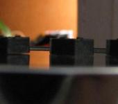 Снял стоковые пластиковые хексы, крутил, вертел, несколько минут думал может в них вся проблема. На вид все они одинаковые и ровные. Но микрометр показал что боковая поверхность не ровная - различия от 0.05 до 0.1мм. Положил их на гладкую поверхность (см. фото). Далее были зачищены все 4 хекса мелкой наждачной бумагой на ровной поверхности. После этого боковая поверхность хекса полностью прижимается к диску без каких-либо перекосов.