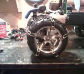 Вот попробовал на Реву цепи одеть… прет как танк по снегу, по льду отлично разгоняется, залазит на сугробы… одевал на штатную резину, думаю по грязи тоже классно будет! Фоты: