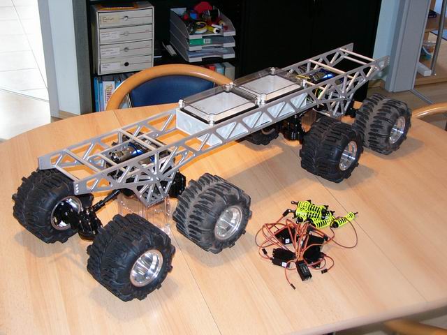 Той недолгой работы ДВС, что я наблюдал, хватило мне лично чтобы понять - нафиг не нужно подруливание заднего моста на 6WD на offroad. Просто с зафиксированными ровно задними колёсами было отлично. На асфальте - да, возможны проблемы, но на грунте проскальзывания достаточно и этот сдвоенный задний мост работает как два большущих и широченных колеса - т.е. сзади по-любому чумовой зацеп. В итоге модель на газу рулиться офигительно! Почти как заднеприводная и радиус поменьше чем у 4-х-колёсного, только стабильно как полноприводная и очень длинная. Имхо - 6WD получилась модель великолепная по рулёжке и в то же время стабильная, а прыгает просто изумительно.