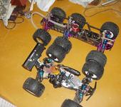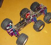 В барахолке приобрел шасси аналогичной машинки, разобрал, образмерил детали и сварганил предварительную компановку новой машинки с приводом на 8WD.