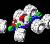 Именно так я думал сделать когда-нибудь что-то типа БТР на шасси Саважей или трагги-багги (скорее всего). Только применить 7 дифференциаллов - т.е. фактически соединить 2 модели (укороченные до предела базы и рамы, колёсная база должна быть около 200-220мм) соединить через общий центральный дифференциалл. Получится ПОЛНАЯ развязка всех мостов при любой длине. Передние обе оси поворотные, задние - нет, расчёт рулевой трапеции посередине между 2-х задних осей. Если не найти очень длинные кости для раздатки от центрального к “переднему-центральному” и “заднему-центральному” - надо поставить промежуточные стойки, типа как для центрального дифференциалла, но в них просто вставить жёсткие валы (отрезать от 8мм ОВС или свёрел), к которым с обеих сторон прикрутить чашки с костями или МИПы покороче, чтобы итоговая длина вышла как надо. Примерные прикидки - самые короткие кости и МИПы - для 1:8 - задние от Ф-2 - около 50мм, центральный диф - 50мм (расстояния между осями-шарнирами противоположных костей). Минимальное расстояние между соседними осями получается около 210-220мм, общая база до 4-й - 630-660мм. Соответственно кости от “самого центрального” должны быть около 200мм - таких в природе нет. Но можно через стойки соединить 80-90мм кости от Саважа или багги. Всё конечно надо подробно чертить - но даже по этим прикидкам задача решаема. Передача от этих валов на шестерни “центральных” дифференциаллов - либо пиньонами для электромонстров (точат стальные под 5мм валы) - как раз оденутся на чашки-оси дифференциаллов, либо приделать колокола обрезанные (тоже придумать можно). Общее передаточное выйдет около 44 с главными парами и спурами как на багги (43/13) - что как раз для “краулера”. Вполне возможно, даже 21-го мотора хватит, чтобы нормально таскать 10кг тушку. Ну а с БК и полимерами - будет зверь!