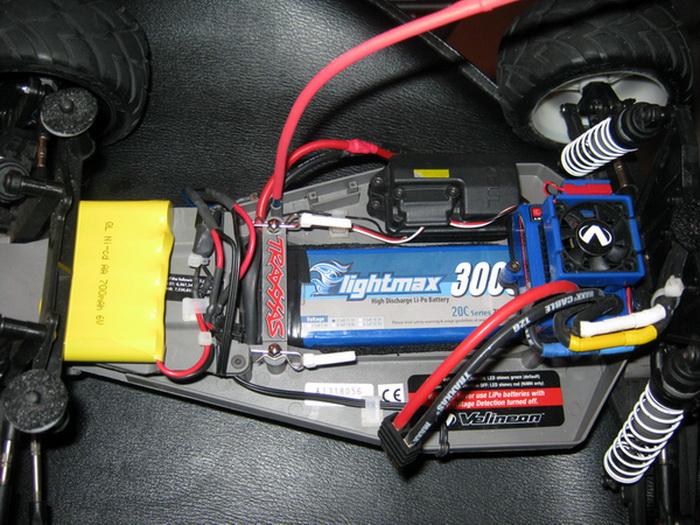 Лишний вес на пользу передку сам знаешь))тем более я катаю только по асфальтированной поверхности , большие площадки,без всяких прыжков переворотов и т.д. не знаю повлияло ли это на развесовку,но трассу на большой скорости держит отлично и хороший зацеп передка при входе в повороты,так же на скорости.Поэтому не стал питать подсветку от силового и ESC