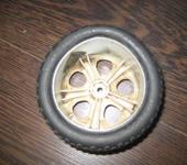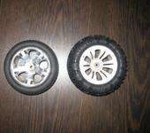 Да она такая же , просто новее , там таких же два колёсика , в том же месте - крути их : одно - многофункциональное ( по умолчанию должна стоять регулировка выворота , вот это колесо и крути ) , другое - “центрует” колёса ( чтобы машинка прямо ехала) .