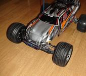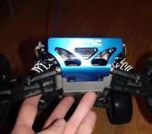 бабочки и рычаги отварил и их пластичность увеличилась, что позволяет спокойнее переносить удары. бампер РПМ-овский, пластиковый, что б защитить рычаги и корыто. корыто не варил (нужно что б жестким было, я на литии катаюсь) плюс, стоит самодельная алюминиевая защита мотора (просто толстую пластину аллюминия 3 или 4мм, помоему 3… загнул буквой Г, отзенковал по месту крепежа и винтами установил под передаткой (винтов аж 6 штук.))