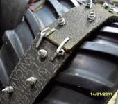 Итого: 116 шурупов, 3 отработаных ремня ГРМ (помоему 59 зубов насчитал), и толстая стальная проволока для соединения в кольцо, затем натягивание на колесо…