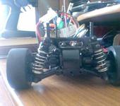 Вот и я не найдя себя в дрифте (основная причина - отсутствие трасс с нормальным покрытием), решил переделать свою ТТ-01D в раллийку! По случаю у нашего одноклубника была приобретена разбитая Багги “Пилотаж Циклон”, аммортизаторы с которой и перекочевали на ТТ. Места крепления аммортизаторов были перенесены, т.к. в стандартные они просто не влазили! Подвеска получилась жесткой, но для покатушек по грунтовке думаю это не плохо! Главное, чтобы пластик выдержал.
