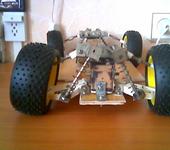 Диффы и рулевую крепил к шасси на болты-дно всё было неровное, потом поменял на болты с потайной головой.Собираюсь поставить бампер(что-то типа из пеноплекса).Кузова нет-куплю в следующем году(субару импреза или митсу лансер эво).Мотор-купил в магазине(мощи немного,скорости тоже)Акки 4х700mAh NiMh GP.