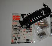 Рычаги аэродинамические, сделаны в форме крыла( не знаю дают ли они что то в плане скорости, но чистить их после гонки весьма просто)Еще одно оригинальное решение , это нижняя дека состоящая из 3х частей, сначала я этому значение не придал, н потом понял и увидел на соревнованиях на другой машине…при хорошем ударе лентит дека, соответственно покупаем полностью новую деку, и полностью перетрязаем шасси, здесь же покупаем за недорого переднюю или заднюю часть, перекручиваем несколько болтов крепежа диффа и снова в бой…экономично, удобно, практично.