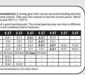 Для этого и других моторов можно пользоваться таблицами любого производителя, просто смотрите рекомендуемую передатку для аналогичного вашему по виткам мотору. При смене ротора скажем на меньший уменьшайте на зуб, на больший повышайте, ну это так, очень условно.
