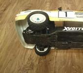 А теперь и у меня есть XV-01, б/у но в хорошем состоянии. Вариант изначально был ТС ПРО, что включает некоторые изменения: блокированный перед, другие рычаги и аморты. Отсутствие защиты ремня, электроники и подкрылков. Но бывший владелец защиту поставил, рычагов мне подкинул, остальное буду докупать понемногу. Главное найти детали платы В, на моей модели отсутствует бампер и отломано его крепление. Поставил на неё кузов Ауди от Каризмы. Смотрится уродливо, эта Каризма ни на каких шасси не сидит красиво. Но кузов лянчи жалко бить, без бампера поездим с этим.