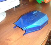 Потом по форме выклеиваем из стеклоткани и эпоксидки заготовочку (можно и др. технологиями). Ну а потом вырезаем как надо. Закреплять по обстоятельствам. У меня на HPI-PRO-3 такая защита заводская и выполнена из лексана. Креплю по контурам на липучке.