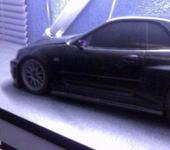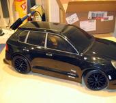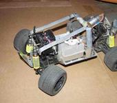 А на фото то, что получилость, сзади колеса от багги Kyosho Zaboon (сейчас шипы сняли, стала ниже, но более устойчивей), а спереди более маленькие (родные)
