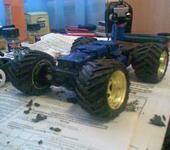 Ну и два моста, передний и задний. Превое, что я сделал, это организовал рулевое упаравление сервомашинкой, и подружил а/м со стоковой аппой от асошки. Платой на которой был и приемник и рег в оригинальном игрушечном варианте при этом пришлось пожертвовать. Силовой двигатель поставил БК аутраннер KV 3600. По началу все питалось от 4 акков типа АА, потом от 4S LiPo.