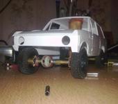 Привет всем.Увидел тему про маленькие мосты и решил показать вам мой Range Rover 1\24 с самодельными мостами ну и вообще всей подвеской.Мосты из меди и латуни,карданы от мини-Z AWD подшипники в ступицах от советских приборов,ведущая шестерёнка мини-Z AWD,ведомая от игрушки не помню какой,винтики от будильников и очков,наконечники рулевых тяг от вертолёта.