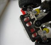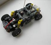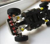 adriano19930325, мини сервы стоят только спереди, сзади как мне показалось они просто добавили шестерню или запихали одну серву, а превратить серву в обычный мотор с редуктором очень просто: вытаскиваеш из сервы потенциометр вместе с его кишками и проводами, а затем просто прикручиваеш “+” и “-” моторчика на контакты, на которые у тебя прикручен обычный двигатель, и всё! К сервам прикрутили ось, которая вставляется в посадочное место для кулака, и тем самым она может поворачиваться, а дальше уже дело техники;)
