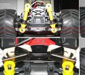 В-третьих. Не понравилась конструкция рамы. У прошлой версии - копии с Kyoshoвского, паукообразная структура хоть и была более живодрягущей, но давала впечатление более свободного хода колес и проходимости. Этот, я боюсь, может повиснуть на пузе и никакой полный привод его не спасет. Дорожный просвет у старой версии тоже по моему был побольше.