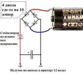 Итак, что можем сделать мы? Берем двигатель ну к примеру как у автомодели электрички 1/10, на счет перемотки не знаю…ведь чем толще провод тем больше токи будут - это нужно экскрементировать 😆 ну и на выходе ставим стабилитрон и кондер.