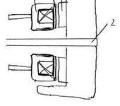 На иллюстрации 1-колесо, 2-ось, 3-железный тормозной диск, прикреплённый к колесу неподвижно, 4-электромагнит в виде половинки броневого сердечника, закрытый “фрикционной накладкой” 5, установленный на ступице с невозможностью вращаться, но с возможностью двигаться вправо, примагничиваясь к тормозному диску.