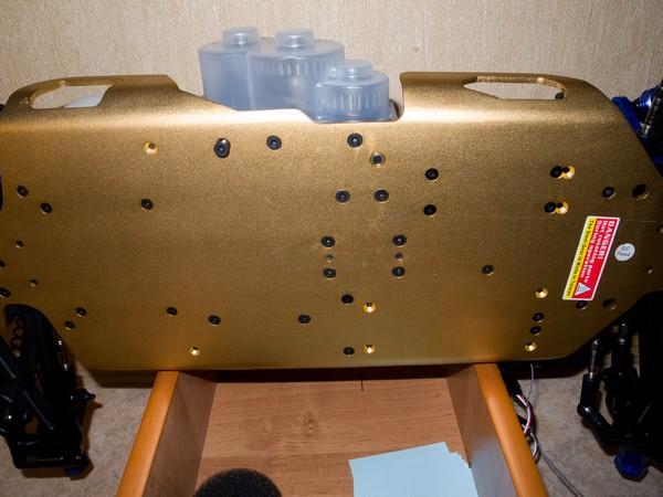Может я ошибаюсь, но по компановке мотора и шестеренок очень сильно напоминает MCD v4. Только на этом шасси под мотором стоят шайбы, что бы задний кардан не тер о картер двигателя. На mcd v4 столкнулся с такой проблемой, хотел шайбочки поставить под мотор, но так же надо было ставить под гирлянду и под корпус центрального дифа. Пришлось подпилить картер мотора.