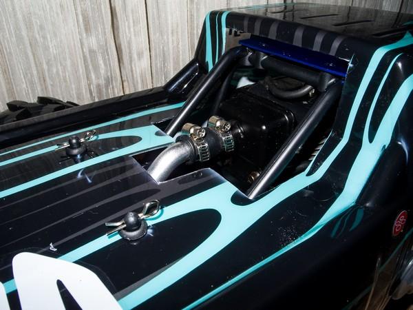 С таким шлангом тачка вообще не поедет. Заказывай глушак от Zenoah, стоит копейки, ставь его и выводи выхлоп трубкой ПО КРАТЧАЙШЕМУ пути, тоесть вбок. Такой длинный шланг отжирает мощи огого. Сам попробуй сначала с ним, потом без него.