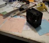 решил проблему. взял два кулера 60х60 и моторчик привода от компьютерного дисковода. из одного кулера выкинул все оставил только цилиндр, а у второго осталась площадка для мотора. на на диск на который одевается CD. надевается вентилятор вся эта конструкция водружается да площадку , а сверху для защиты лопастей. питается от борта по тпхометру 3740об/мин . температура в режиме полного наваливания 105-110 цельсиев.