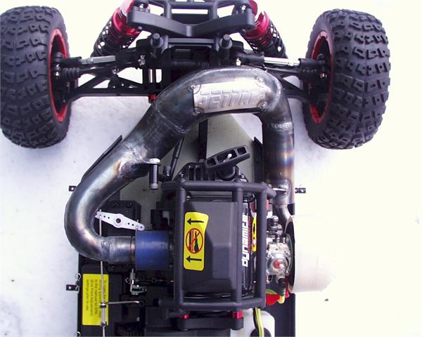 Вот вариантик трубки для багги. Сидит конечно не железобетонно, но для первых тестов думаю пойдет, а там уж и будет понимание нужнали труба или более мощный двиг.