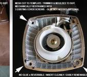 Ещё на чунге я на пулстартер снутри клеил микронную нерж сетку (ячейка 0.4мм, проволока 0.2мм). Хорошо от грязи на маховике спасает. И можно её обработать водоотталкавающим спреем для обуви - не будет и воду пропускать (я на нитро такие чехлы из этой сетки на воздушные фильтры делал). Но! Мне кажется пропускаемость воздуха надо повыше. Сетку с ячейкой побольше.