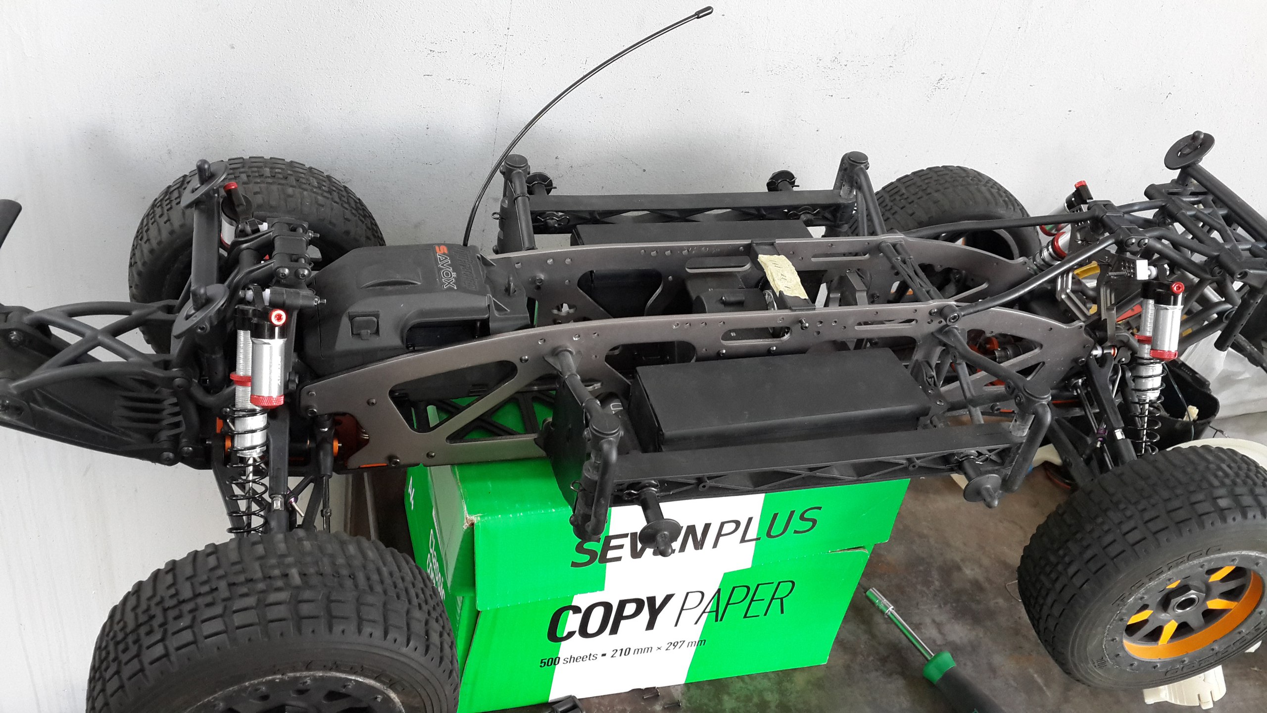На фото, если присмотреться, то можно заметить такую деталь, как спойлер (или анти-крыло) с Baja 5B, просто пришла идея, что если модель подготовить под асфальт вариант. Расскажу чуть позже.