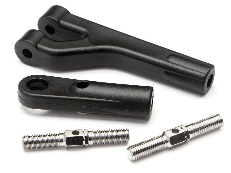 Начал раздумывать что можно в модели поменять. Первым делом это серва. Нашел в просторах интернета оригинальное решение, сделать Dual-servo. Пришлось приобрести: серво-бокс, рулевую трапецию, амортизаторы, а то стоковые сильно протекали (2е покатушки и 1/3 масла нету) , бабочку, т.к. подозрительно гнется (играет) на креплении амортизатора и конечно 2е сервы Savox SA-1231-SG ~32кг. каждая.