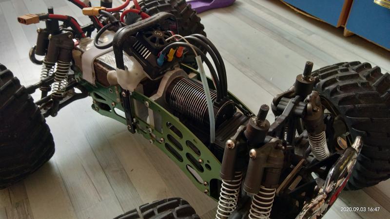 Регулятор особо размещать не где - самое подходящее место оказалось над центральным дифференциалом, между моторм и аккумуляторным отсеком, т.к только там он ничему не мешается и в более менее нормальной безопасности под распоркой для переноски модели.