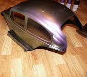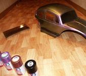 А вот долгожданный кузов ,только только из покраски фотки…Использовалась зелено-фиолетовый лак(основной) и бежево-розовый),подложка черная,тонировка темная.Процесс покраски был очень сложен,но эфект получился ОШЕЛАМЛЯЮЩИЙ,при дневном свете ярко зел.-фиол.,а ближе к вечеру бежево-розовый…Глядите…