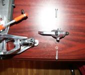 Вообщем пишу от приятеля,т.к. в акаунте…Образовалась,такая проблемка. В процесе переборки и усовершенствования модели,сняли весь пластик и поменяли на элконовский алл.,но возникли такие вопросы: Сколько на верхнем и нижнем рычаге должно быть проставочных шайбочек между стенками ,на втулке и еще как расположены?На верхнем рычаге ,какое должно быть расстояние от кромки алл. рычага до кромки пластикого наконечника?На каком расстояние ограничитель хода подвестки на верхнем рычаге,должен стоять??Какое должно быть расстояние между наконечниками тяг (красные от MCD,чуть побольше только в длинну,но и закручены до конца).Почему у меня тяги от серво сейвера торчат дальше рычага???И еще посмотрите пожалуйста на кулак,и правильно ли я его собираю:(по значимости снизу в верх) болт под шестиграник в гнездо нижнего рычага с шайбой,на выходе одеваем конусо-образную шайбу ,причем большей площадью прижимаем к плащади кулака.Верхний винт(торсен) просто одеваем ,а щайбу обычную на выходе болта одеваем и прикручиваем???Тюнинг тоже достался б/у ,но очень хороший,а инструкций не оказалось на него по сборке 😦 А и еще, серво сейвер оказался подлинее в зачет чего пришлось тяги поставить на самые последние отверстия которые совпадают с штатным ,пластиковым серво сейвером…Аллю. почти чуть ли не касается стенки…Заранее благодарен за помощь!!! 😃 😃 😃 😃 😃 😃 😃