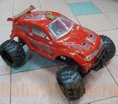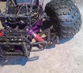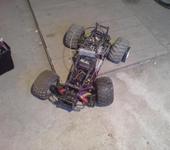 Что то мне не везет. 😦 Только собрал после аварии. Зарядил акум. и вот тебе на… 20 метров и помеха газ в пол и в стену. Последствия видны на фото. Хорошо хоть раму не загнуло.