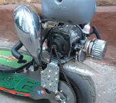 Есть опыт использования в различных конструкциях, мотора от спортивных минимото (см. рис.1), он зарекомендовал себя как очень простой и надежный. При этом цена почти вдвое ниже, чем у модельного двигателя, а объем вдвое больше. В частности я использовал его для переделки электросамоката в бензиновый. (см.рис.2) или здесь подробнее . Также знаю прекрасно ездящий мотоборд, построенный также на базе этого мотора. (см.рис.3). Ну а на последнем рисунке (4), как раз пример использования в моделизме…