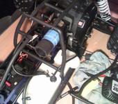 Осталось общую грязезещиту сдлать, радиобокс перенести. Вынести кнопку глушилки в р-н свечи на каркас безопасности,Привод подсоса туда же. Поставить фары, сделать дугу каркаса безопасности которая бы выходила из крыши наружу… иначе там вообше пустота, и при перевороте кузав разлетится на кусочки.
