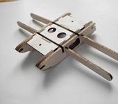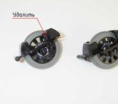 “Выламываем” из них узлы крепления колеса прокрутки и получаем почти готовое хвостовое колесо диаметром 25 мм с деталями его креплением. Удаляем лишние выступы крепления и в первую очередь подпружинивающий храповик-трещетку. Т.к. пластик узла крепления колеса вряд ли чем можно надежно приклеить, то для крепления сверлим два отверстия и будем сажать этот узел в прямоугольное отверстие в днище фюзеляжа на саморезы…